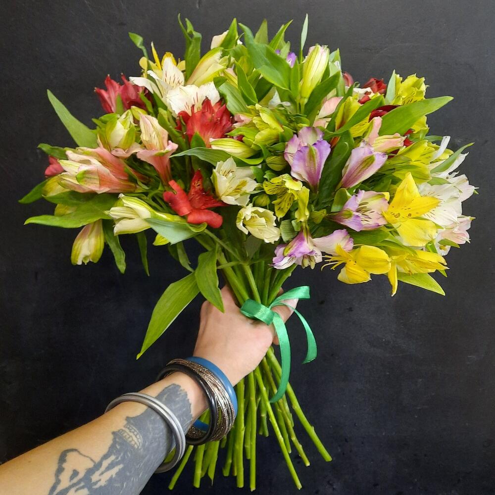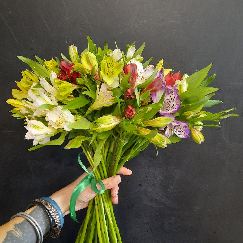 Лента атласная – 2 шт.альстромерия микс – 27 шт.