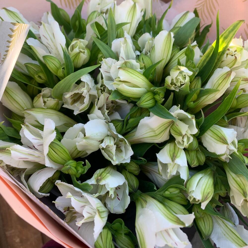 Букет из 11 белых альстромерий в упаковке