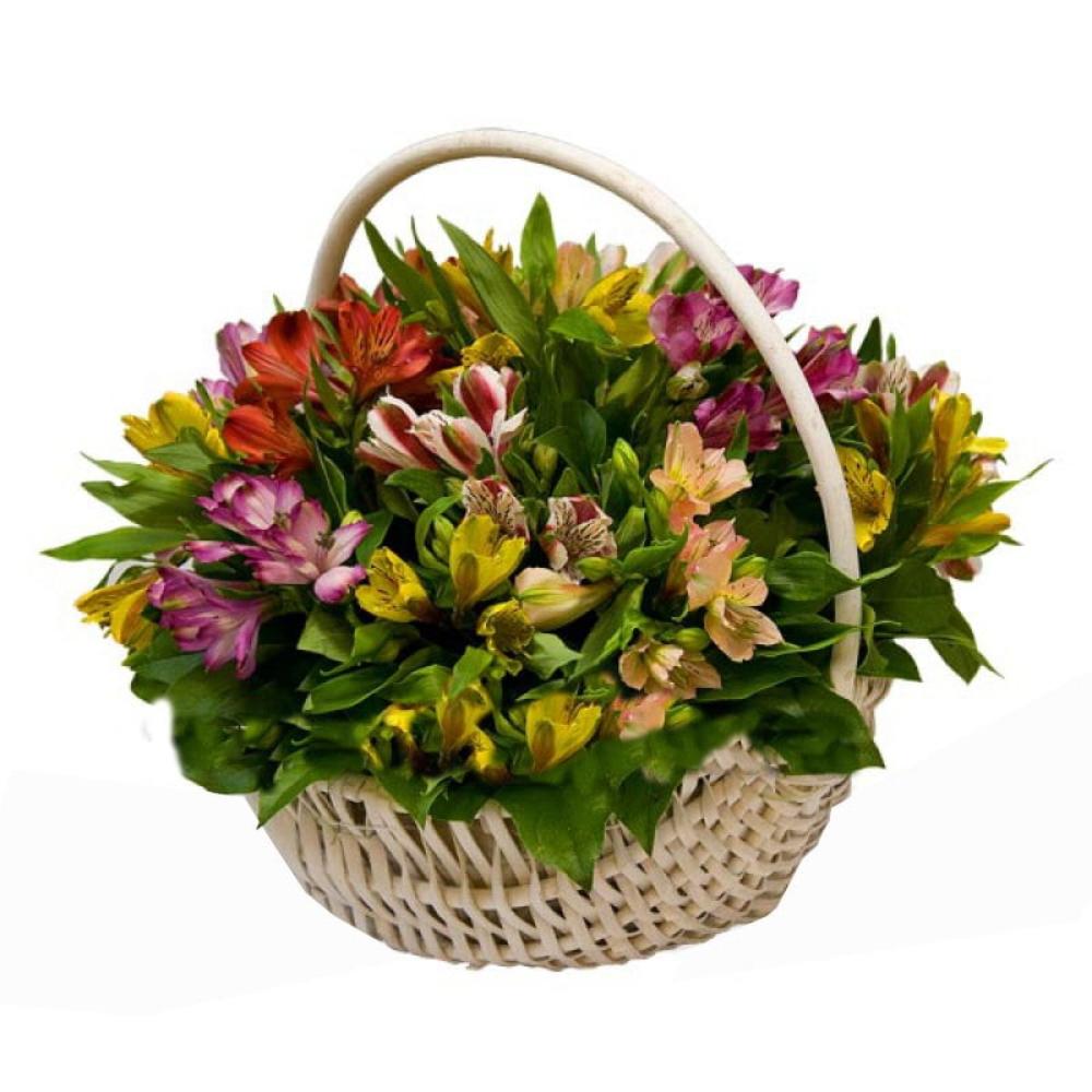 Корзина с разноцветными альстромериями