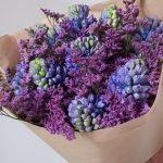 Гиацинт – 11 шт.Лимониум – 5 шт.Упаковка крафт – 2 шт.Лента атласная – 1 шт.