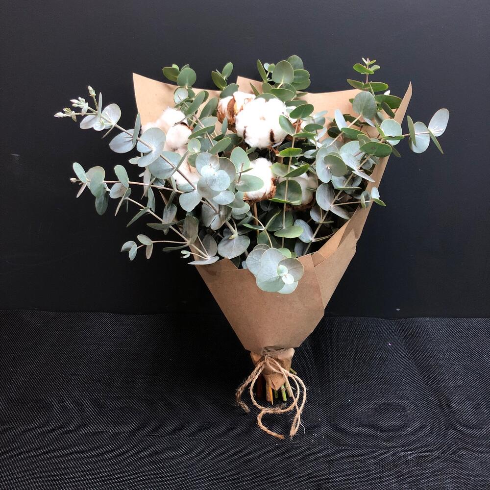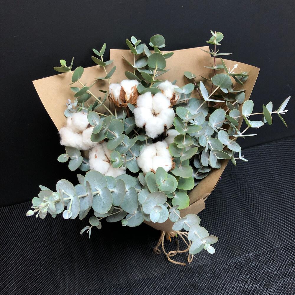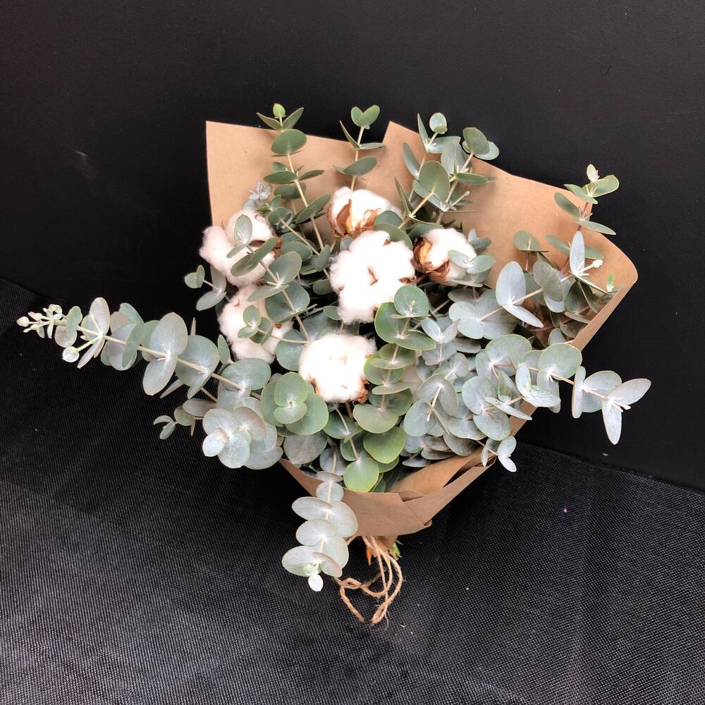 Букет из ароматного эвкалипта и белоснежного хлопка