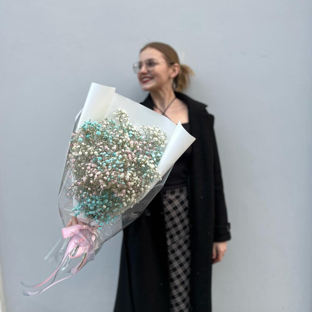 Гипсофила – 3 шт.Лента – 2 шт.Пленка прозрачная – 1 шт.