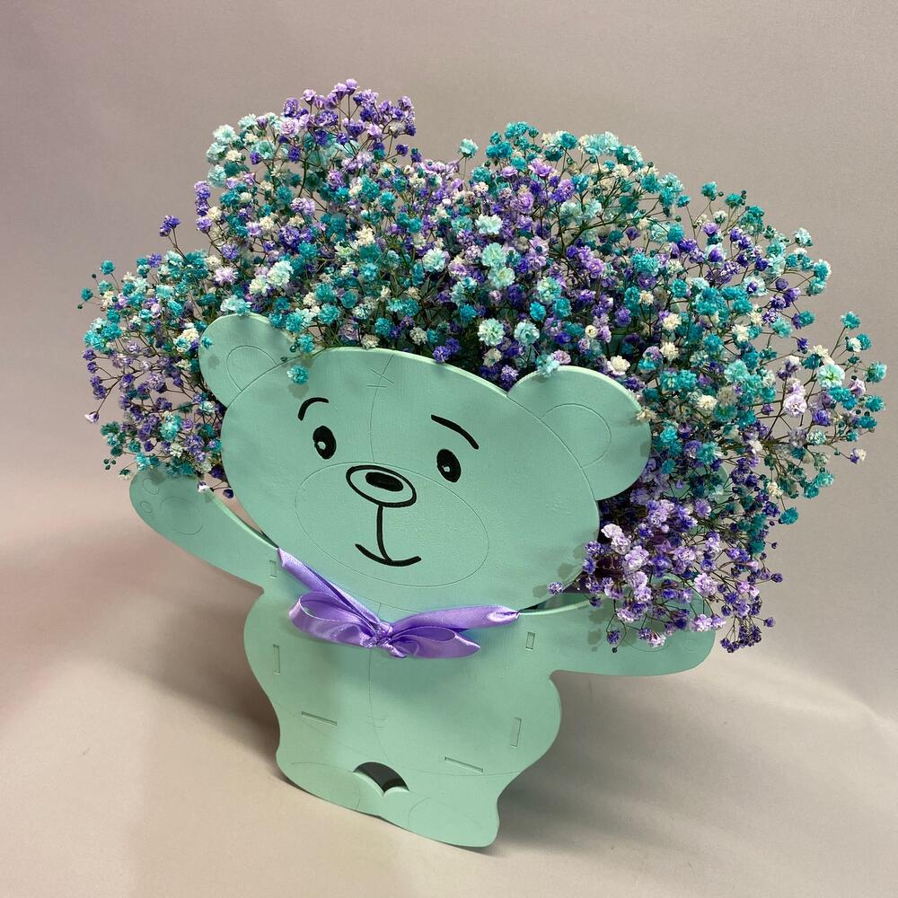 гипсофила радужная – 7 шт.Ящик деревянный – 1 шт.Оазис флористический – 1 шт.