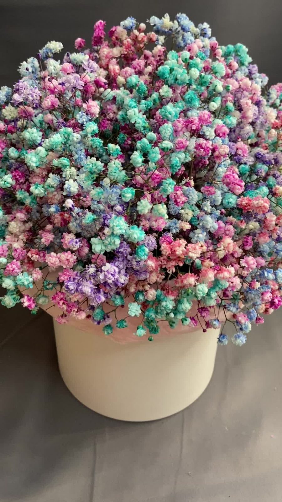 Гипсофила – 9 шт.Шляпная коробка – 1 шт.Упаковка тишью – 1 шт.