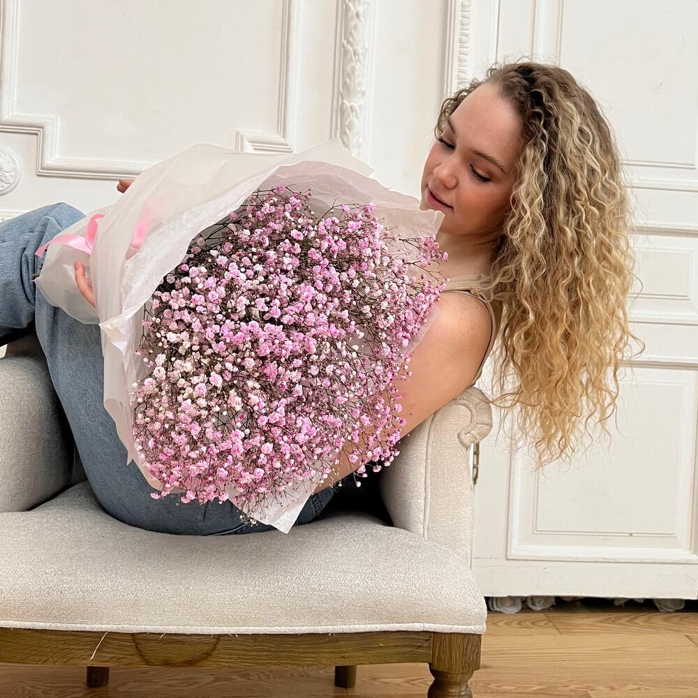 Букет из розовых гипсофил в дизайнерской упаковке.Гипсофилы отличаются отличной стойкостью и со временем превращаются в сухоцвет.Что входит в наш сервис:- транспортировочная упаковка к каждому заказк- кризал в подарок- подпишем открытку с вашим поздравлением- подберем … Показать ещёшарики к букету по запросу (за дополнительную плату)