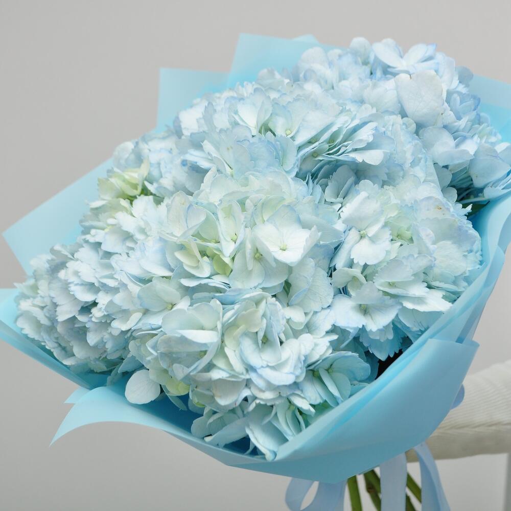 Гортензия – 5 шт.Лента атласная – 1 шт.Пленка матовая – 1 шт.подкормка для срезанных цветов – 1 шт.инструкция по уходу за цветами – 1 шт.хорошее настроение в подарок – 1 шт.
