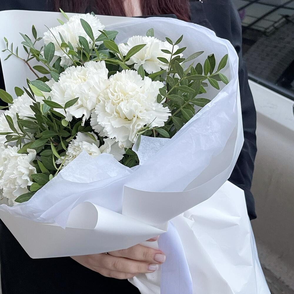 Белые диантусы в дизайнерском оформлении