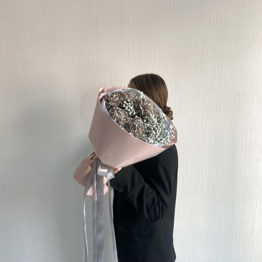 Букет из гипсофилы и диантусов