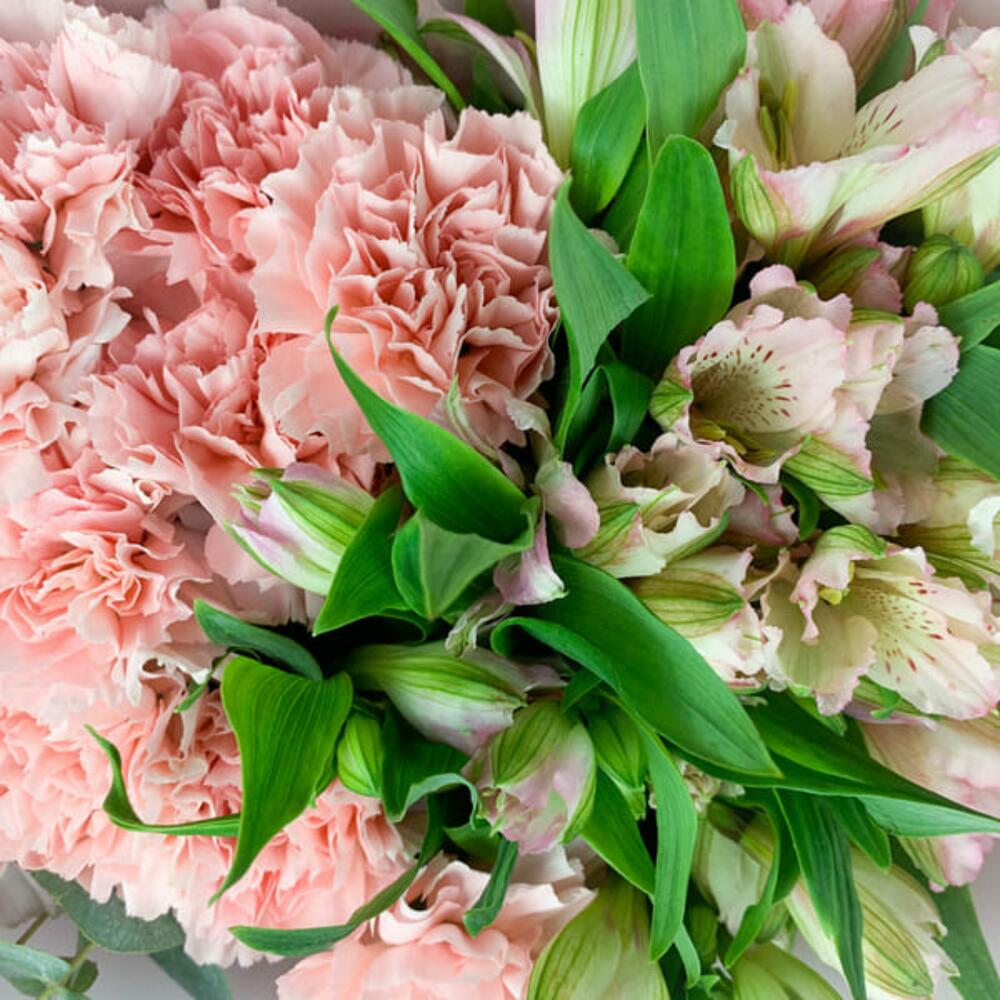 Упаковка – 1 шт.Альстромерия розовая – 10 шт.Диантус розовый – 15 шт.Эвкалипт – 1 шт.