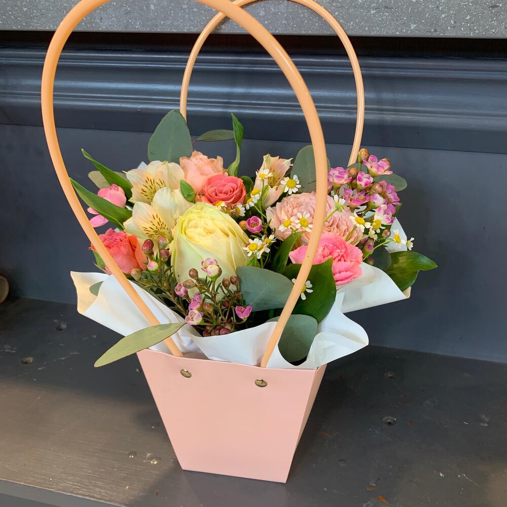 Цветы в сумочке в нежных тонах