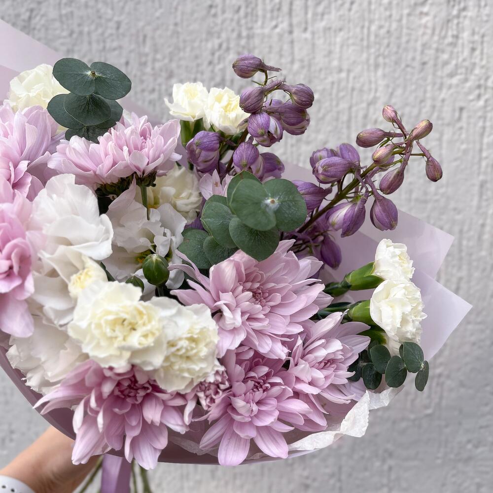 Гвоздики, Кустовые розы, Лизиантусы, Пионовидные розы, Розы