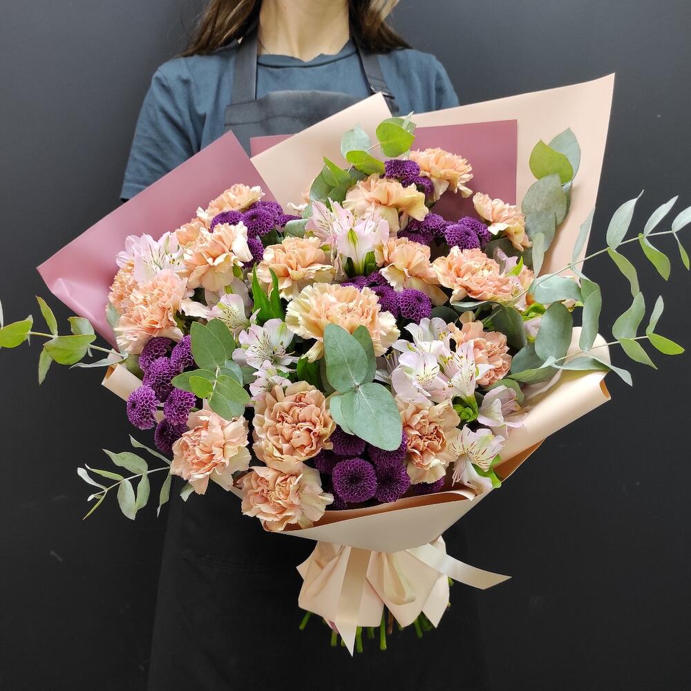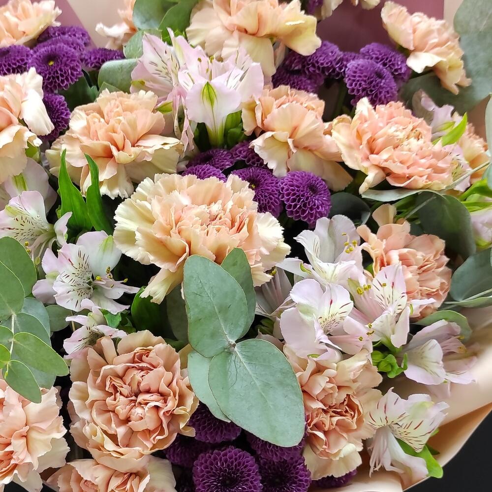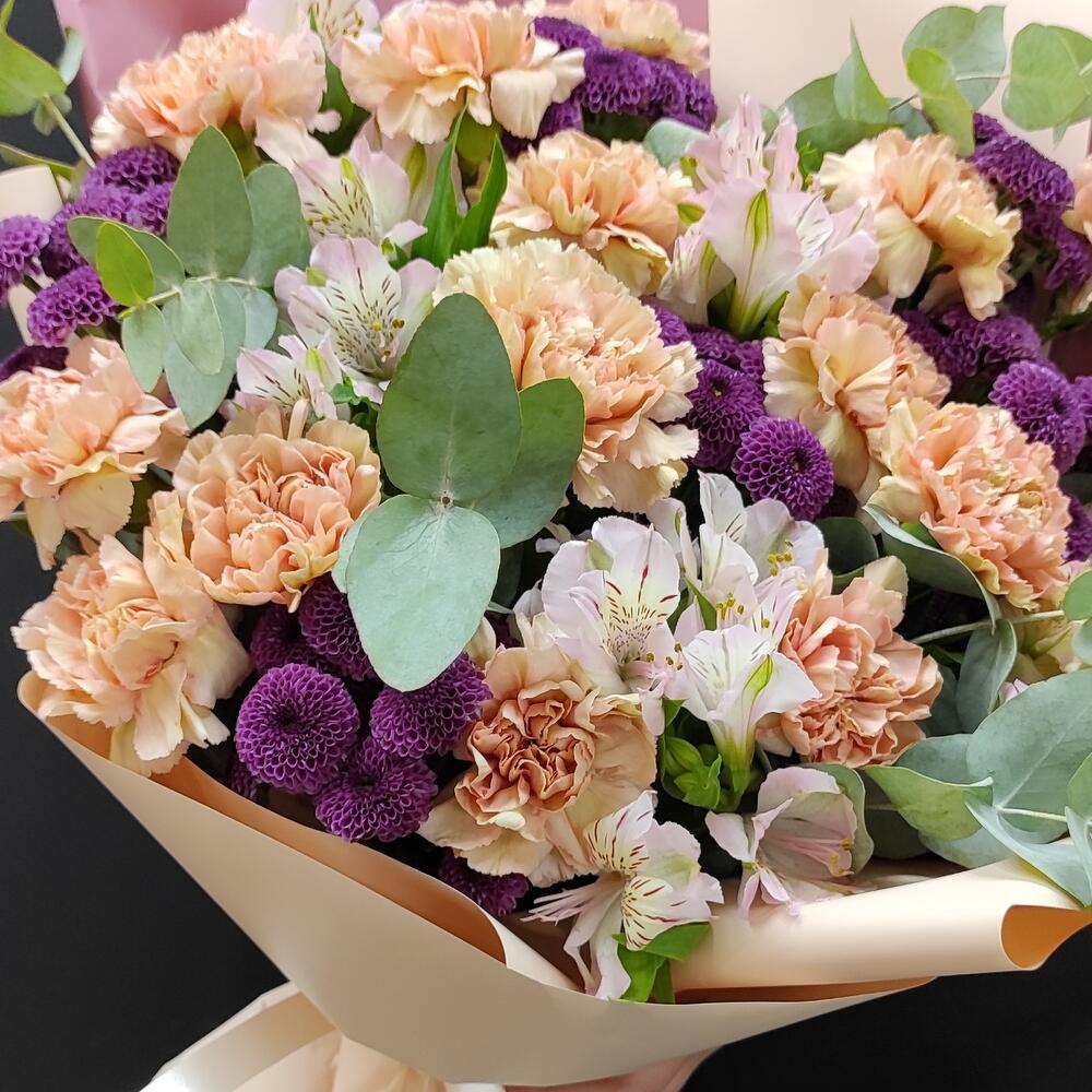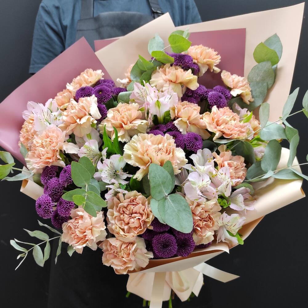 Гвоздики, Кустовые розы, Пионовидные розы, Розы