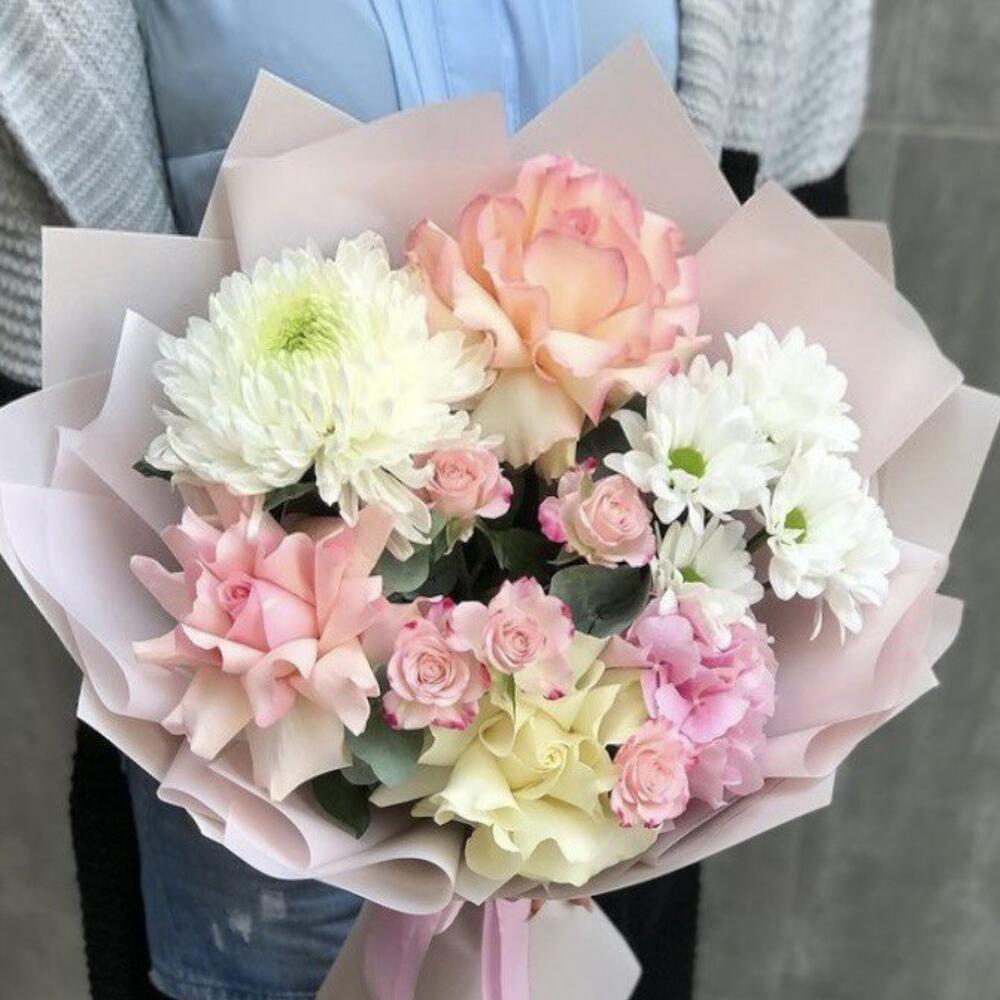 Альстромерии, Кустовые розы, Орхидеи, Розы, Хризантемы
