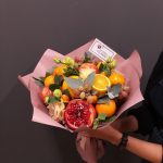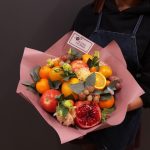 Съедобный букет из сезонных и экзотических фруктов и эустомы “Салмон”