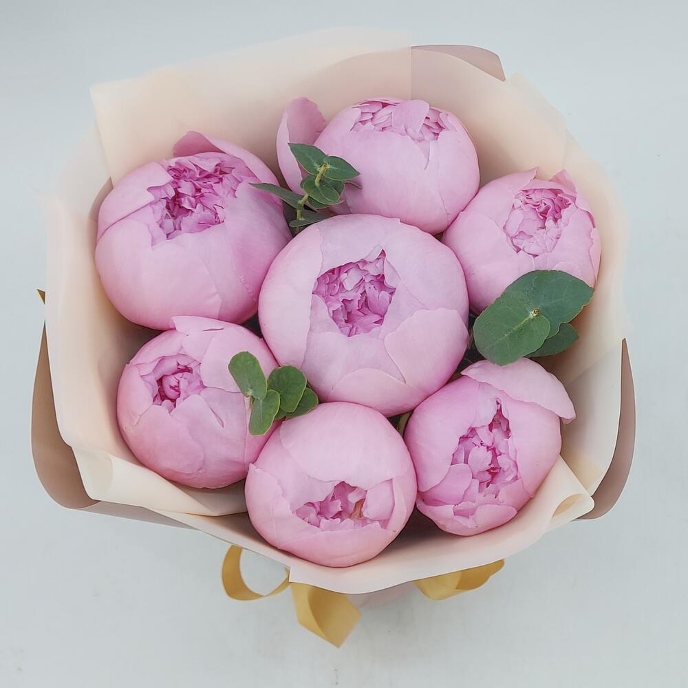 Эвкалипт – 1 шт.Упаковка дизайнерская – 1 шт.пион энджел чикс – 7 шт.