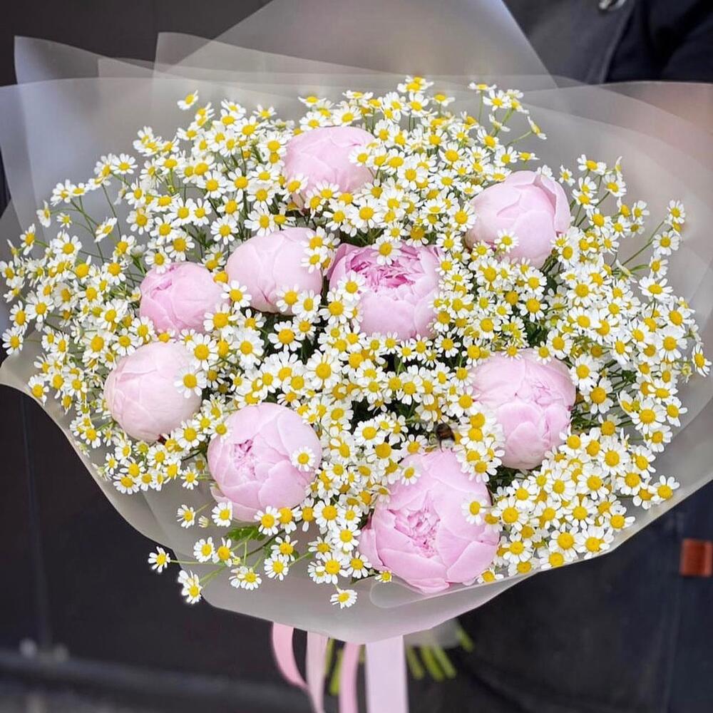 Альстромерии, Кустовые розы, Лизиантусы, Пионовидные розы, Розы, Ромашки