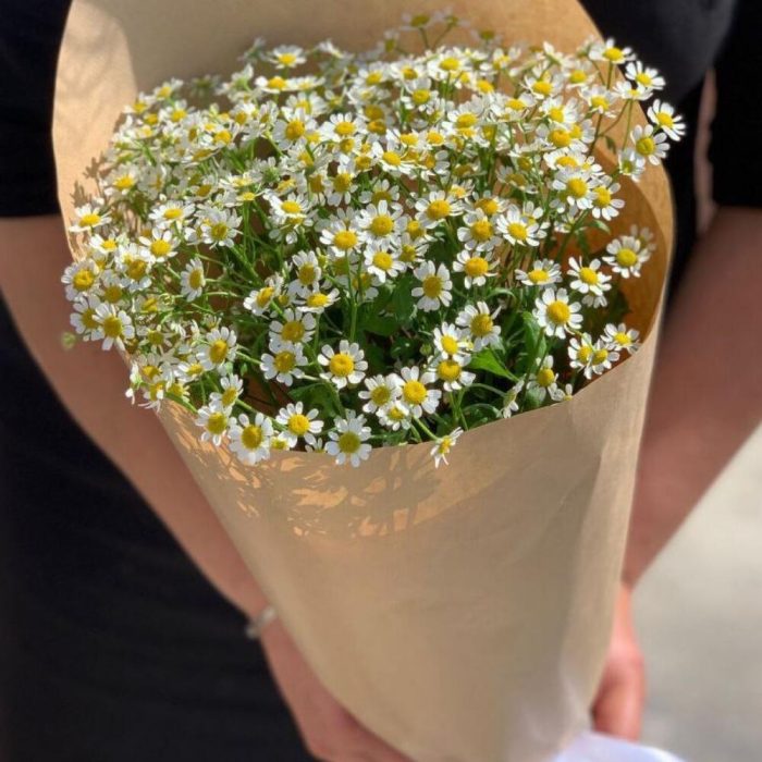 Матрикария (Ромашка Камила) – 7 шт.Крафт – 1 шт.Лента атласная – 1 шт.