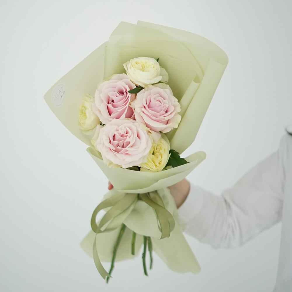 Гвоздики, Кустовые розы, Пионовидные розы, Розы