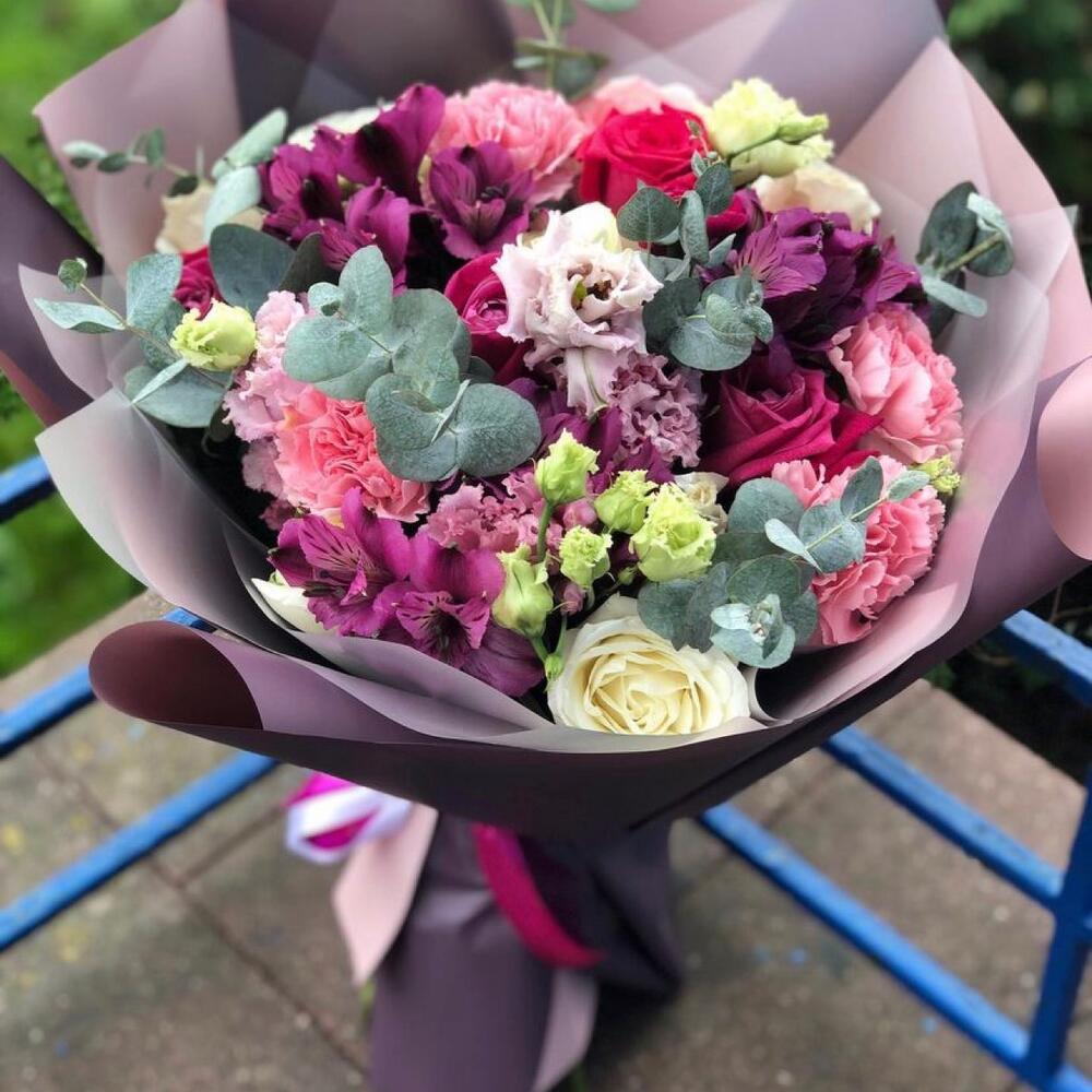 Альстромерии, Кустовые розы, Лизиантусы, Пионовидные розы, Розы, Ромашки