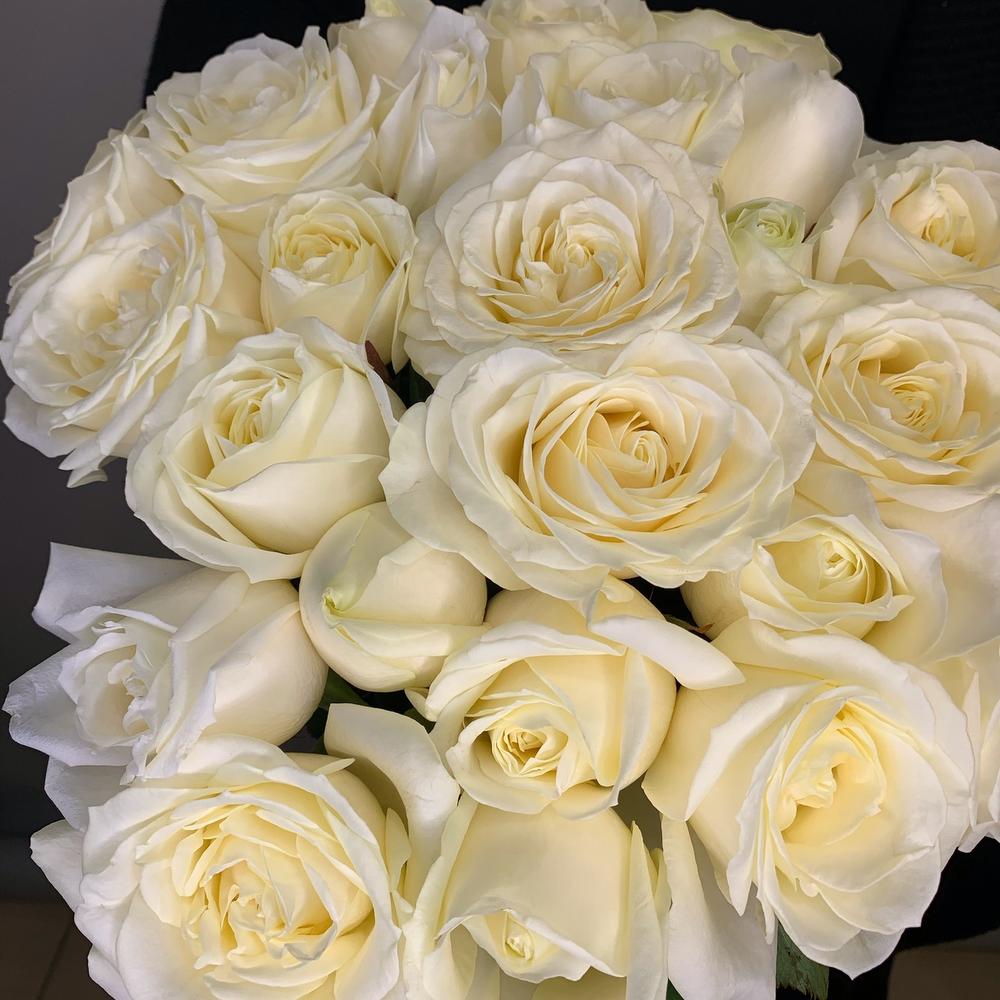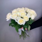 Классический букет из 25 белых роз можно подарить понравившейся девушки, также прекрасным поводом для данного букета будет первое свидание или подарок на свадьбу.
