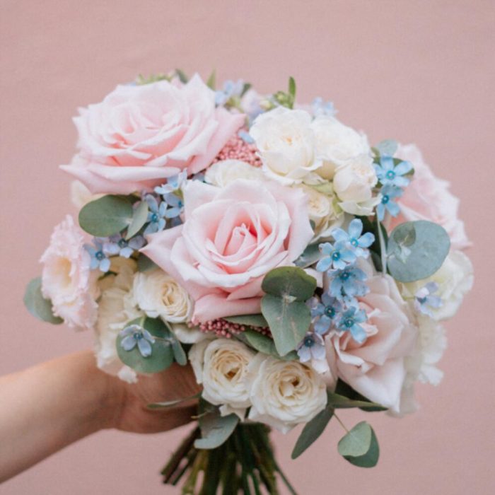 Букет невесты в розово-голубой гамме