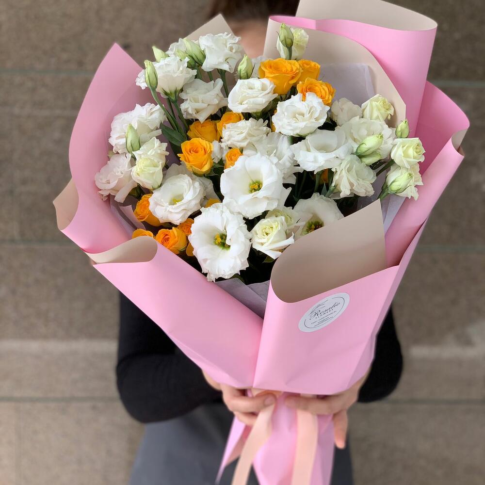 Гвоздики, Кустовые розы, Лизиантусы, Пионовидные розы, Розы