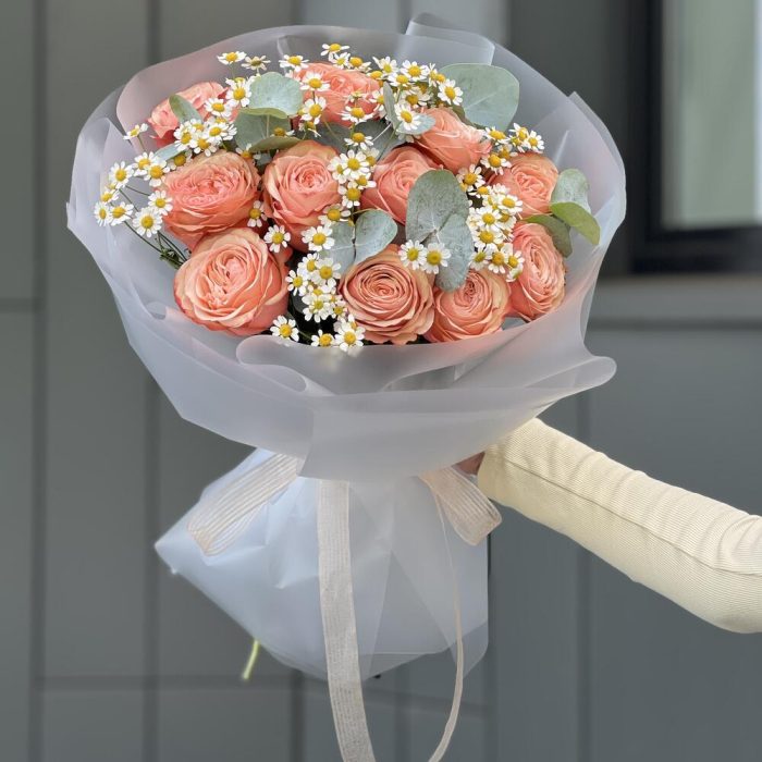 Букет из роз, ромашек и эвкалипта в оформлении!