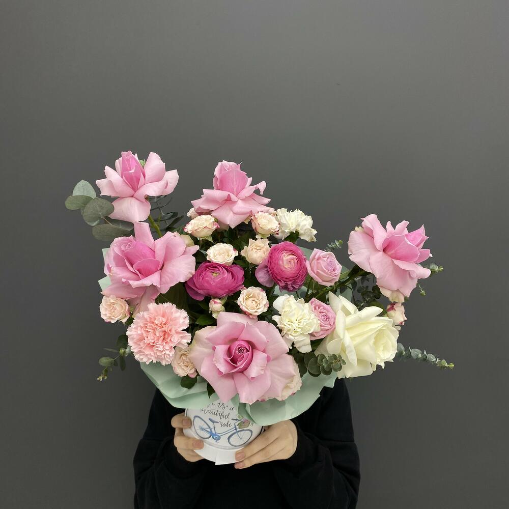 Гвоздики, Кустовые розы, Лизиантусы, Пионовидные розы, Розы