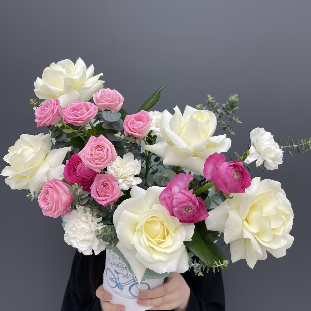 Гвоздики, Кустовые розы, Пионовидные розы, Розы