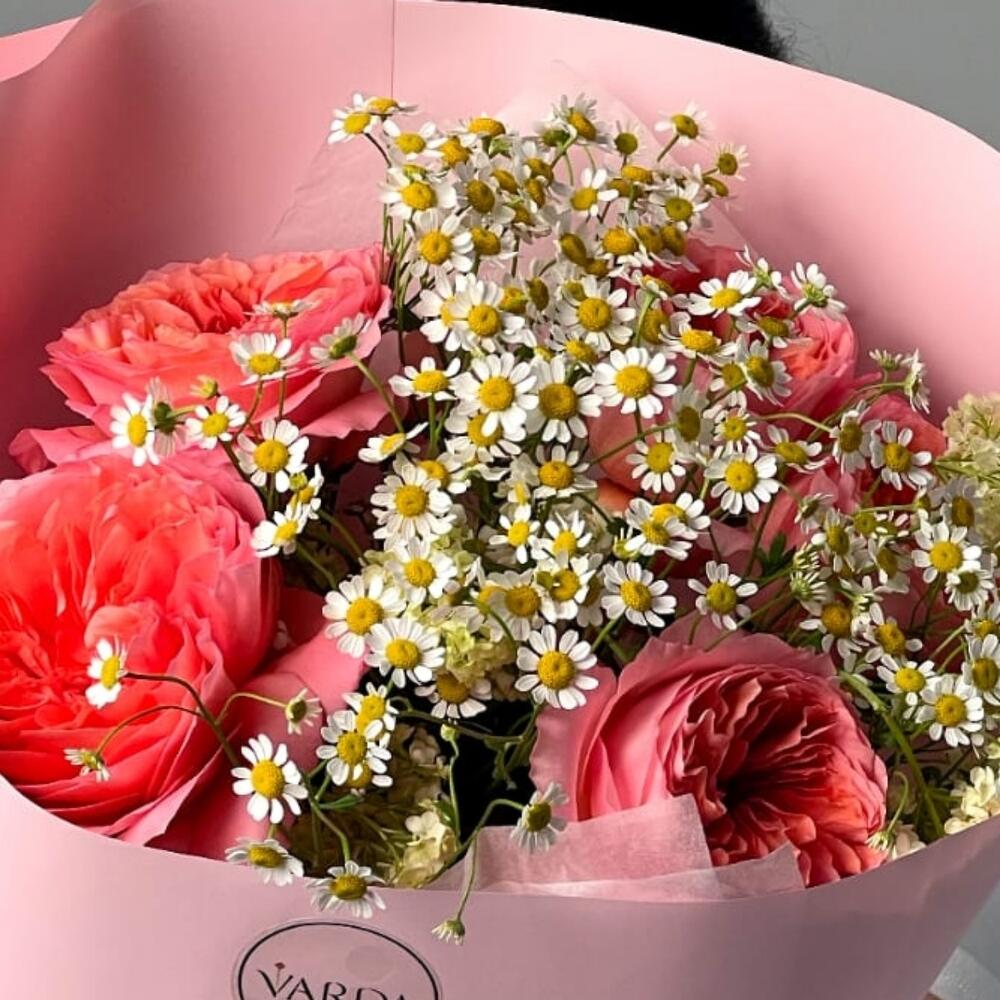 Гвоздики, Кустовые розы, Пионовидные розы, Розы