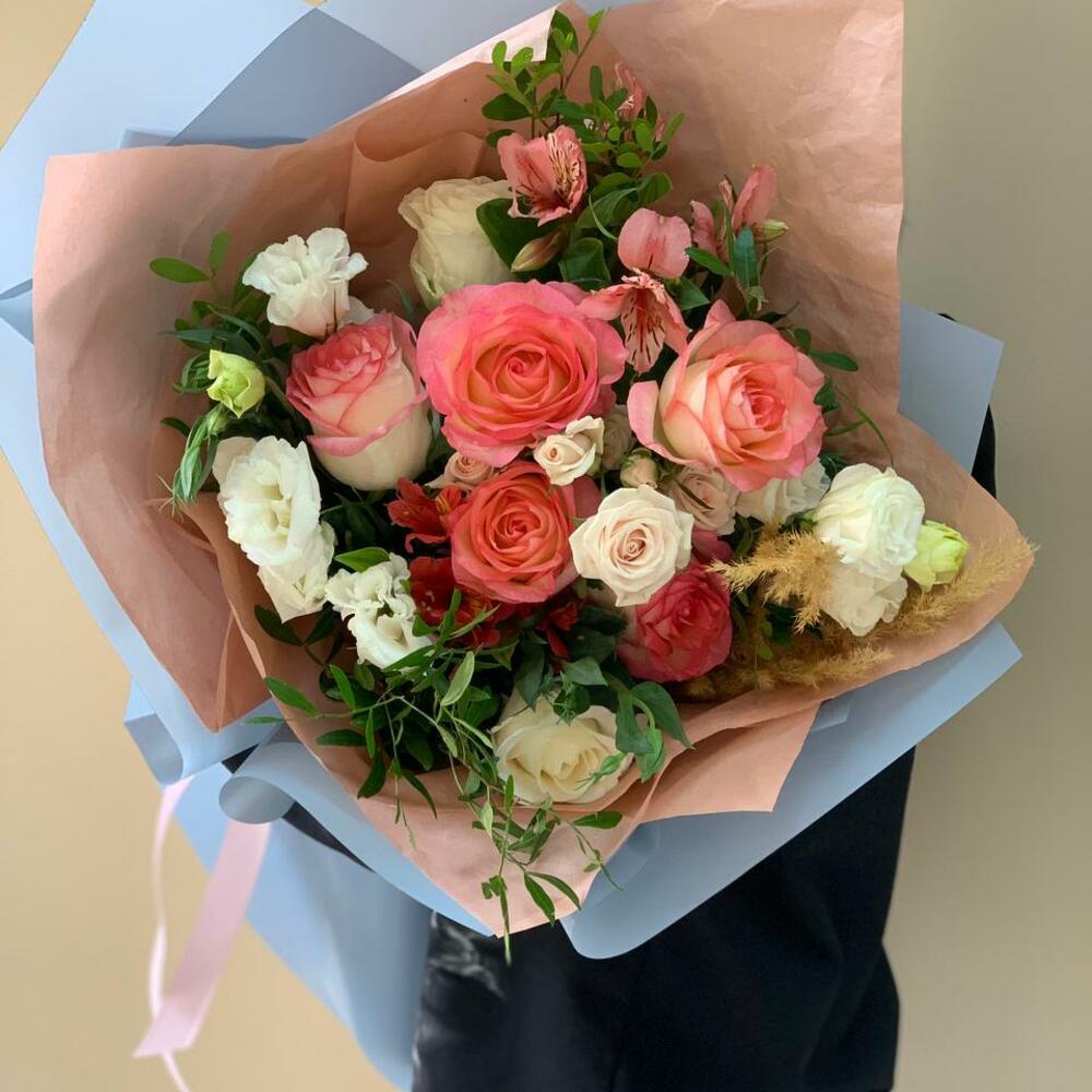 Гвоздики, Лизиантусы, Розы, Тюльпаны