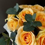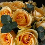 Композиция в коробке из 15 персиковых роз и ароматного эвкалипта