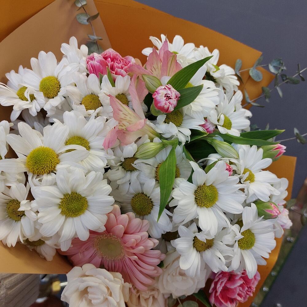 Альстромерии, Кустовые розы, Лизиантусы, Пионовидные розы, Розы, Ромашки