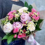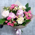 Альстромерии, Кустовые розы, Лизиантусы, Пионовидные розы, Розы, Ромашки