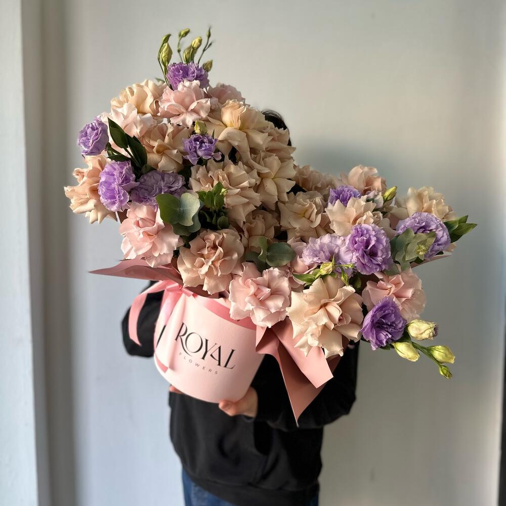 Гвоздики, Лизиантусы, Розы, Тюльпаны