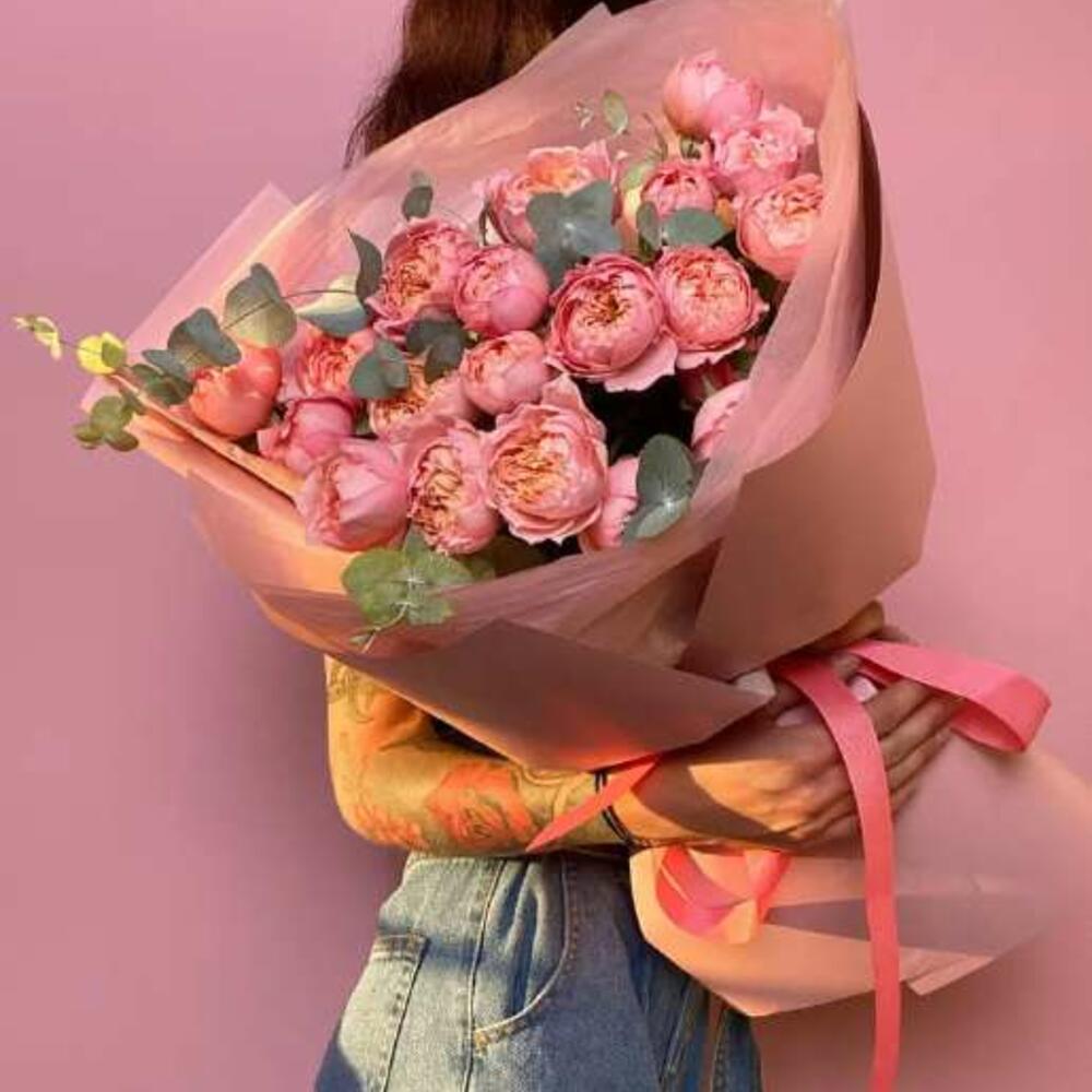 Гвоздики, Кустовые розы, Лизиантусы, Пионовидные розы, Розы