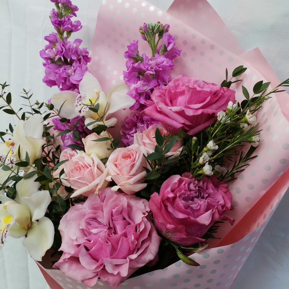 Гвоздики, Кустовые розы, Пионовидные розы, Розы