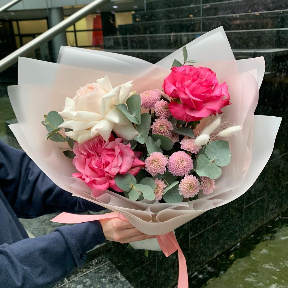Утро на Неве – Сборный букет из роз и хризантеме
