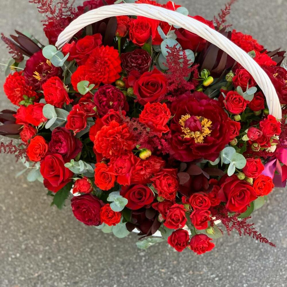 Яркая корзина с красными розами