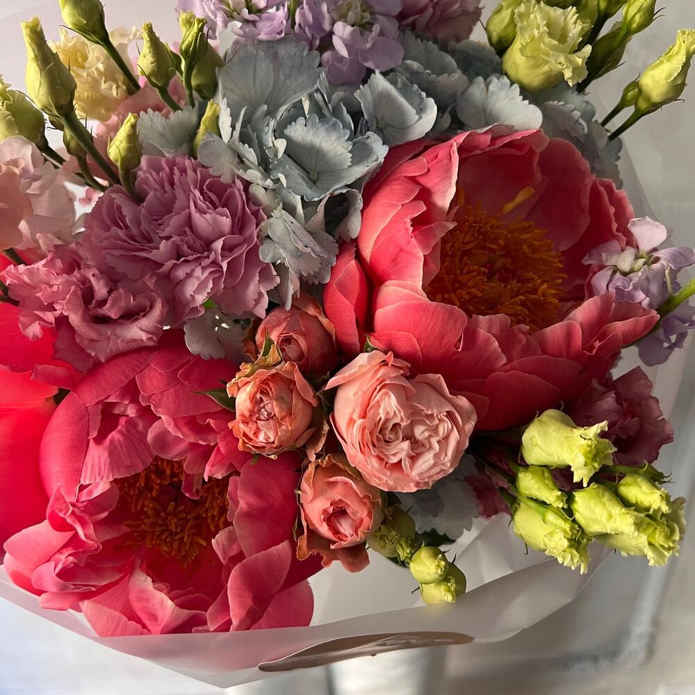 Яркий букет с гортензией и пионами.Профессиональные флористы соберут для вас уникальный, стильный букет или цветочную композицию. Добавят к цветам открытку, инструкцию по уходу за цветами, chrysal. Бережно упакуют цветы в красивую, транспортировочную упаковку. Курьеры … Показать ещёбыстро и бережно доставят заказ адресату.