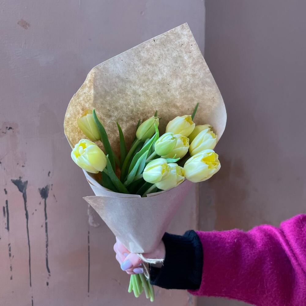 Крафтовая упаковка – 1 шт.лимонный пионовидный тюльпан – 11 шт.