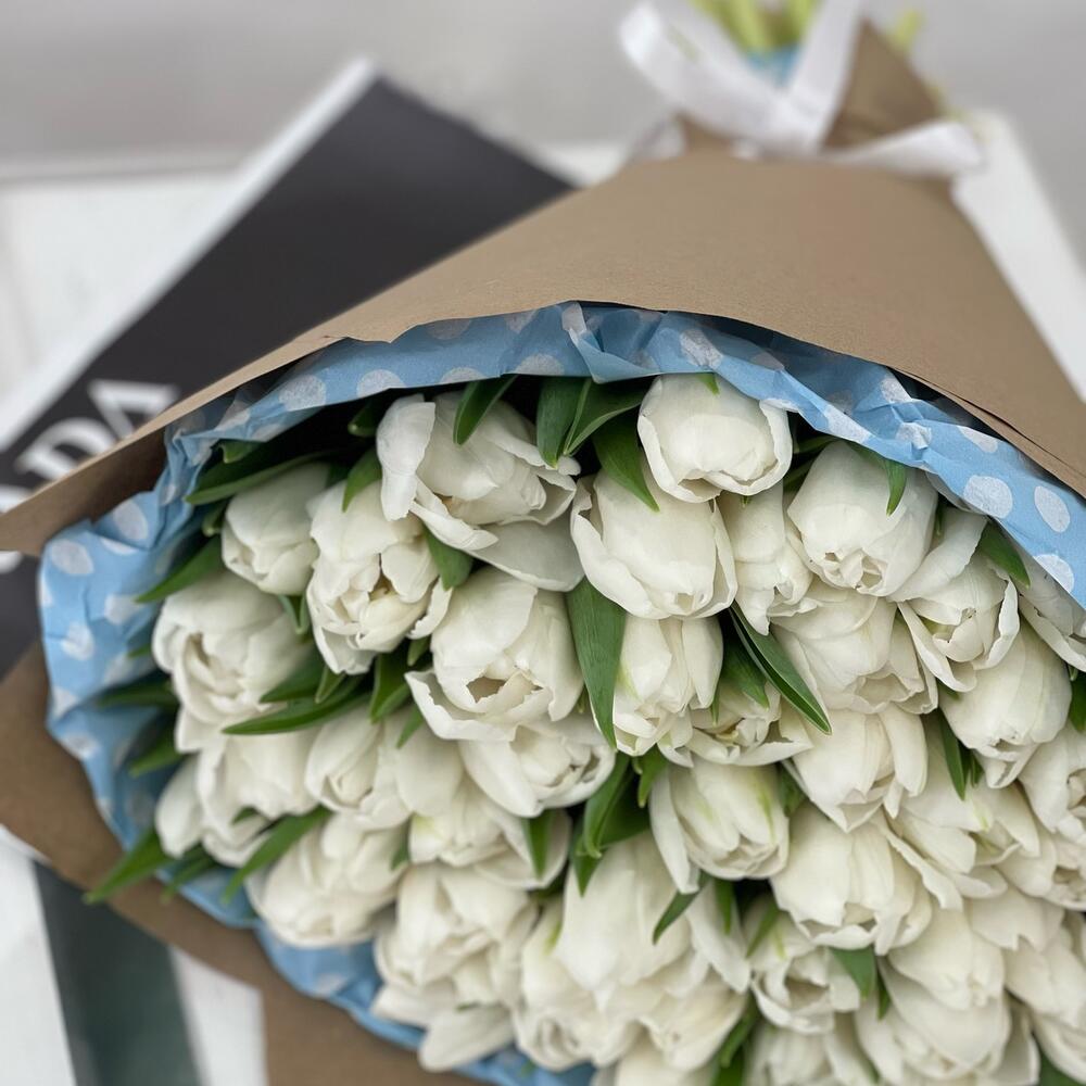 Лента – 2 шт.Упаковка – 2 шт.Белый пионовидный тюльпан – 49 шт.