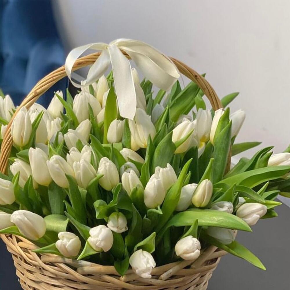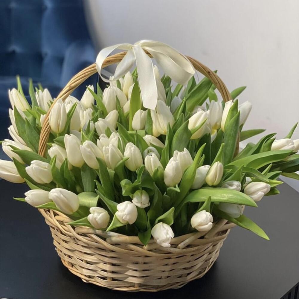 Корзина с белыми тюльпанами